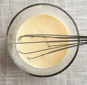 • Next, add the eggs, cottage cheese, milk, and collagen to a mixing bowl. Whisk together and set aside.