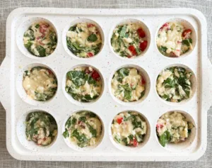 If you’d like to get creative with the egg muffins or want them to taste fresh year round, consider cooking with seasonal ingredients. For instance, in the spring try fresh parsley or chives. In the summer, you could do zucchini. In the fall, try Swiss chard or kale. Lastly, in the winter consider carrots or maybe beets.