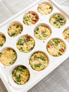 They are so easy to make and are even more delicious on the go! Egg muffins are perfect for people who are busy and need a nutrient dense food that can be prepared ahead of time.