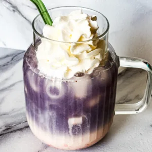 This is such a fun recipe to make and drink! Introducing my butterfly pea tea latte recipe… This recipe includes butterfly pea tea leaves (of course), your milk of choice, strawberry syrup, and lemon juice. Add a splash of vanilla and/or some honey for a softer sweetness.