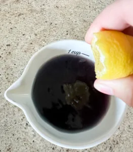 - Squeeze the lemon juice into the brewed tea. And enjoy how the lemon juice changes the tea to a purple color.