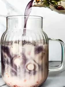 Layering for the “Wow” Factor: If you want those gorgeous distinct layers for your photos, pour the tea very slowly over the back of a spoon. The strawberry milk is denser because of the syrup, so the tea will sit right on top until you’re ready to swirl!