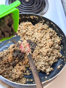 - Let everything cool slightly, about 5 minutes, and then mix in the chocolate chips.