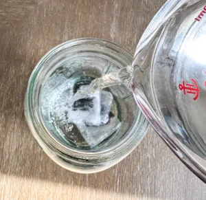 Then, add in the lavender extract- optional. Note, start with a smaller amount. You can always add more lavender extract later on. Add lid or a cheese cloth and rubber band to the jar.