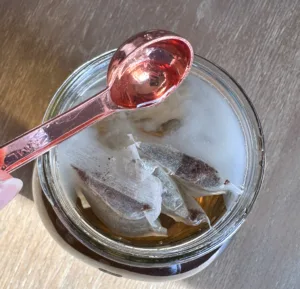If adding milk: You can add milk to your tea to make it more like a latte, one of my favorite ways to enjoy cold brew tea! If you add milk, be sure to drink the cold brew tea within 1-2 days of adding milk and make sure to only add milk to a single portion and not the whole jar of tea.