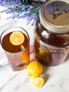 Is this drink kid friendly? While this cold brew tea doesn’t have much caffeine, it still does contain a little. Therefore, it’s probably suited better for teens and adults. However, this recipe can be mortified to be more kid friendly. Just use a caffeine-free, herbal tea, like chamomile.