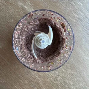 Chopping it up gives the tapenade a more rustic texture. It will be a little more time consuming, but it will still taste delicious!