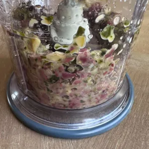 • Then, pulse the food processor a few times, carefully scraping down the sides of the food processor as needed.