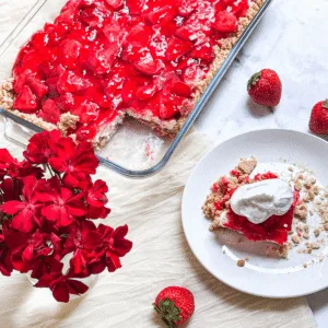 Personally, I feel like the pros outweigh the cons in this instance. This is because strawberry gelatin gives the no bake cheesecake: structure, an eye-catching presentation, added strawberry flavor, and longer shelf life.